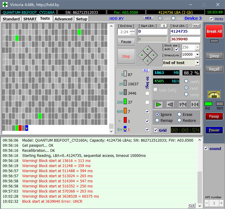Victoria测一下坏道,惨不忍睹。不忍心再进行下去
