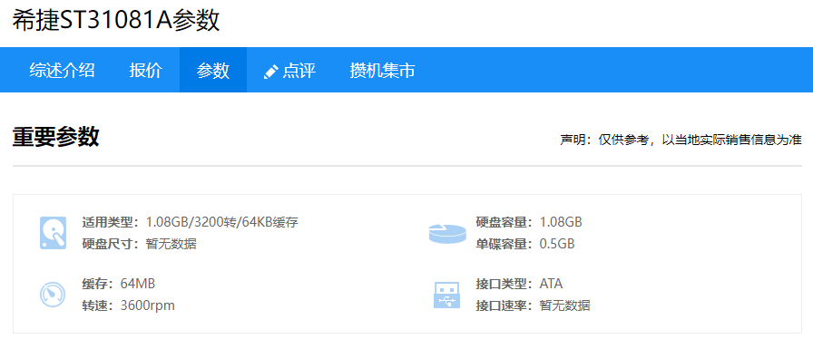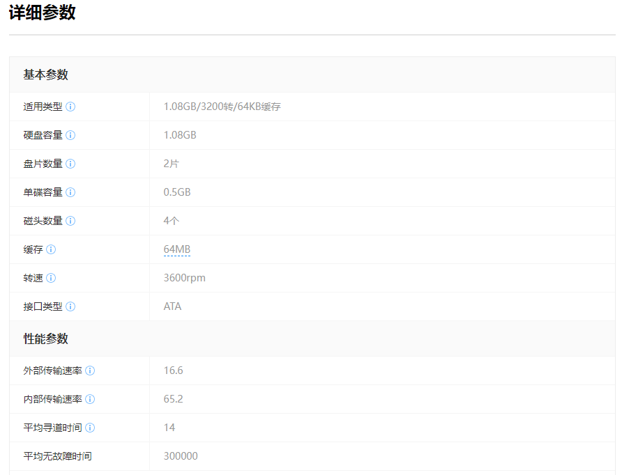 单碟500MB,双盘片设计,64K缓存,3600转/分。