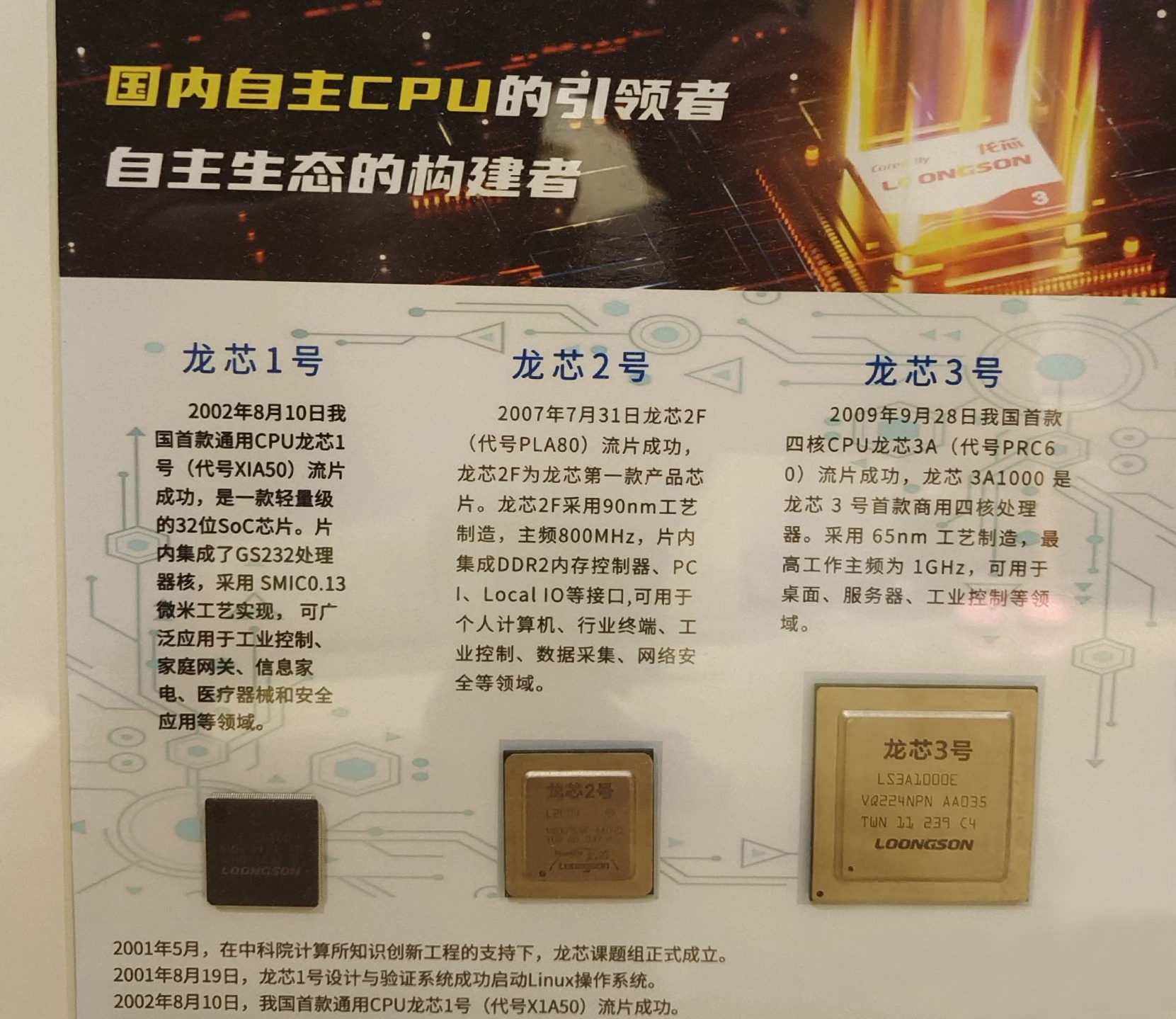 龙芯1号,龙芯2号,龙芯3号 尺寸对比 龙芯1号,龙芯2号,龙芯...